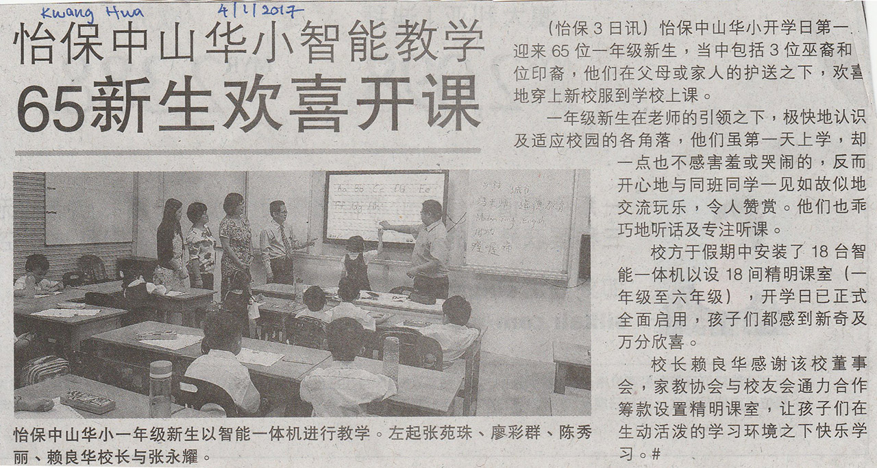 SJK(C) Chung Shan, Ipoh has installed 18 units of SmartONE during the school holidays and are now currently used for teaching to the new students. The students are amazed and intrigued with the technology and paid more attention during classes. The headmaster thanks the PIPG and Alumni for the fundraising events to fund the school with ACE’s SmartONE.